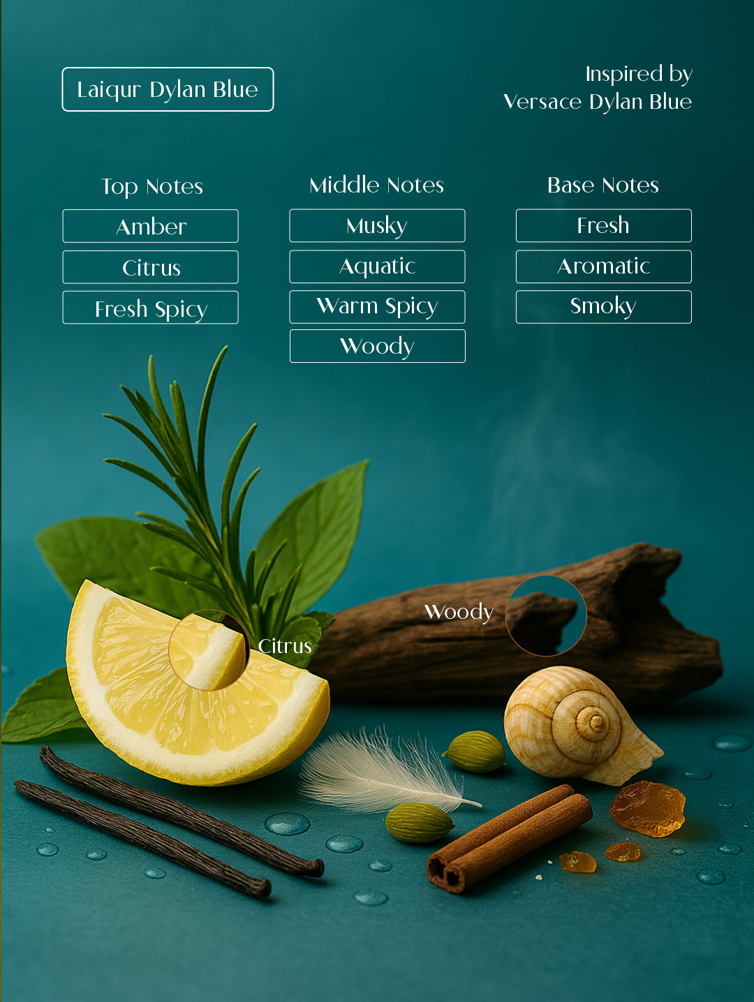 Dive into the captivating intensity of Laïque Dylan Blue, a signature fragrance inspired by Versace Dylan Blue.